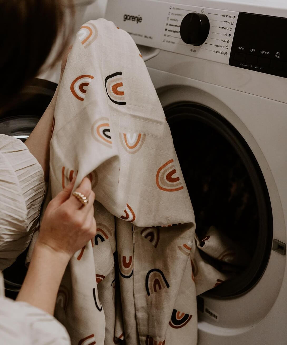 Před prvním použitím vyperte. Perte na 30°C, doporučujeme používat prací prostředek vhodný pro jemnou dětskou pokožku, který neobsahuje chlor a nemá bělící účinky. Perte s podobně barevným prádlem. Nesušte v sušičce. Zajistíte tak nejen komfort pro vaše miminko, ale zároveň tím prodloužíte životnost výrobku.