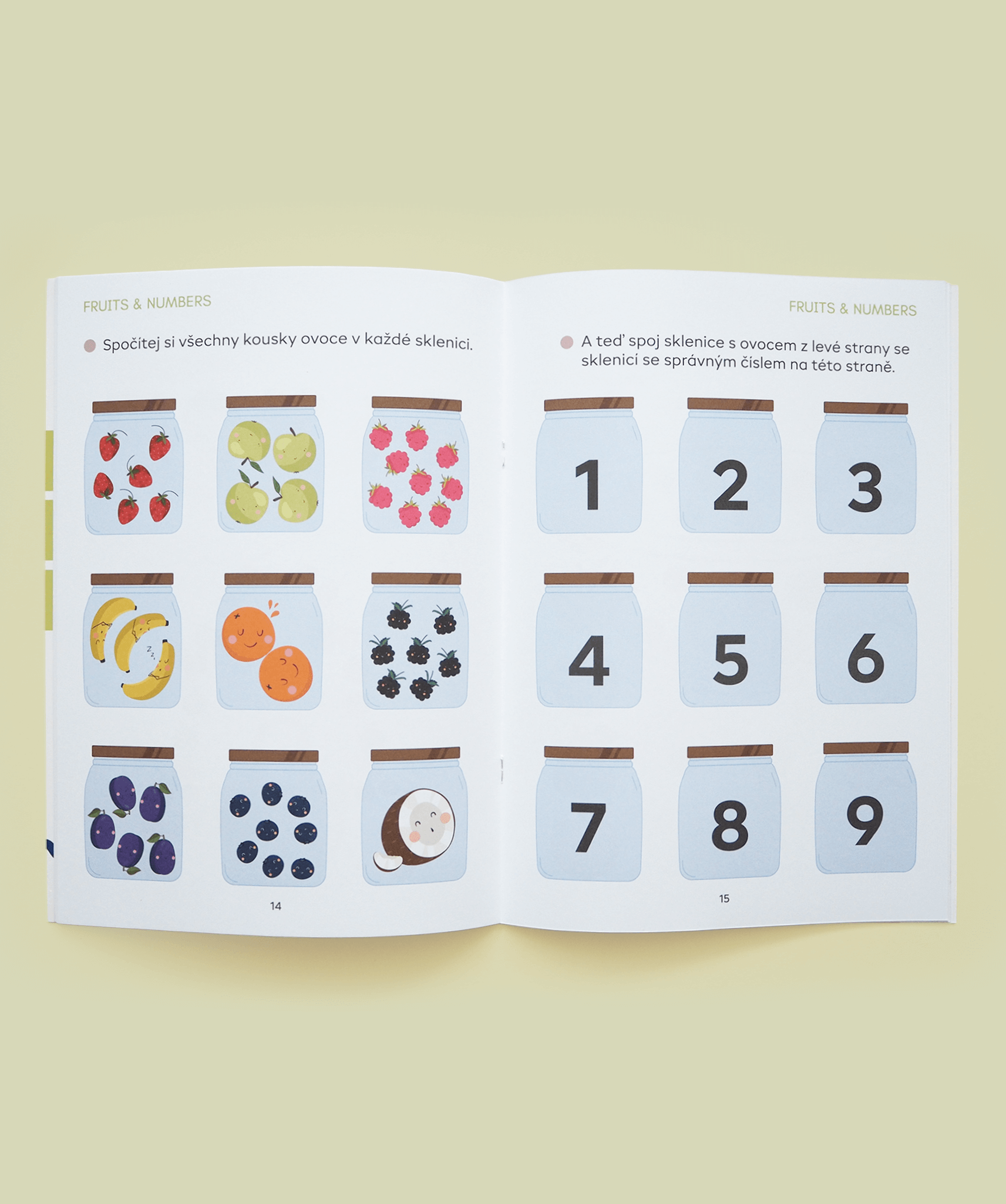 Autorkou ilustrací ovoce je Terezie Vavrošová. Texty úkolů jsou v českém jazyce.